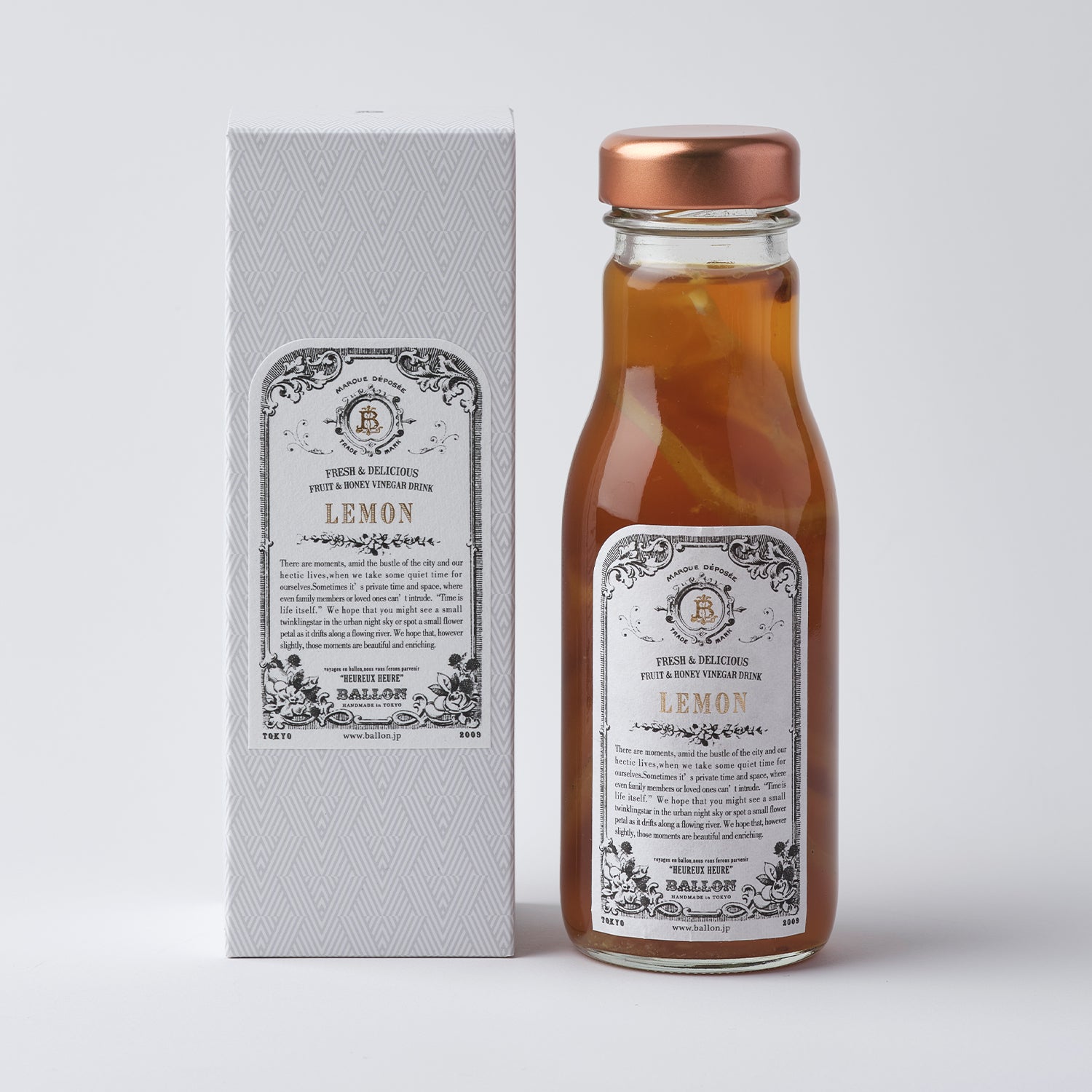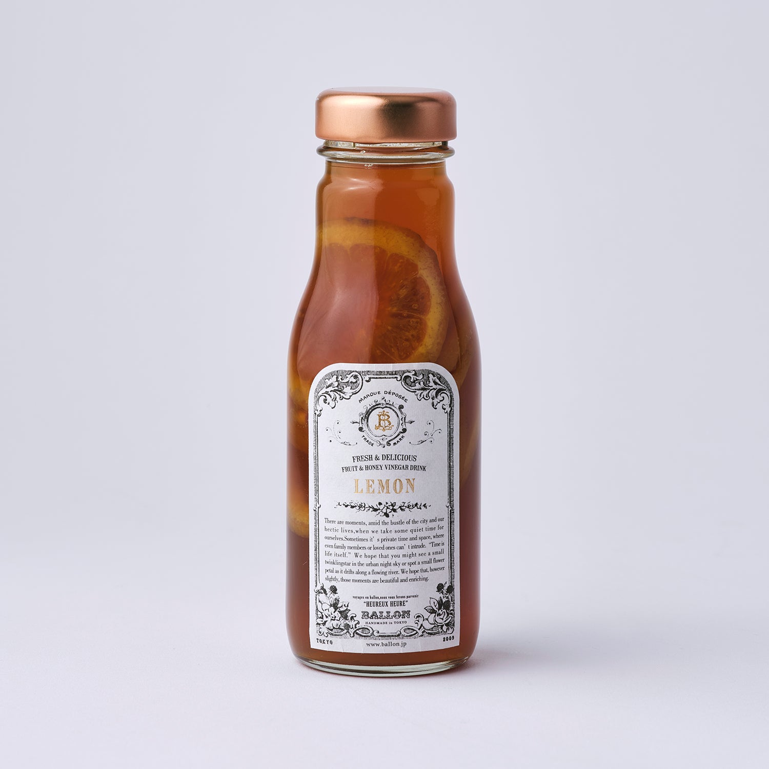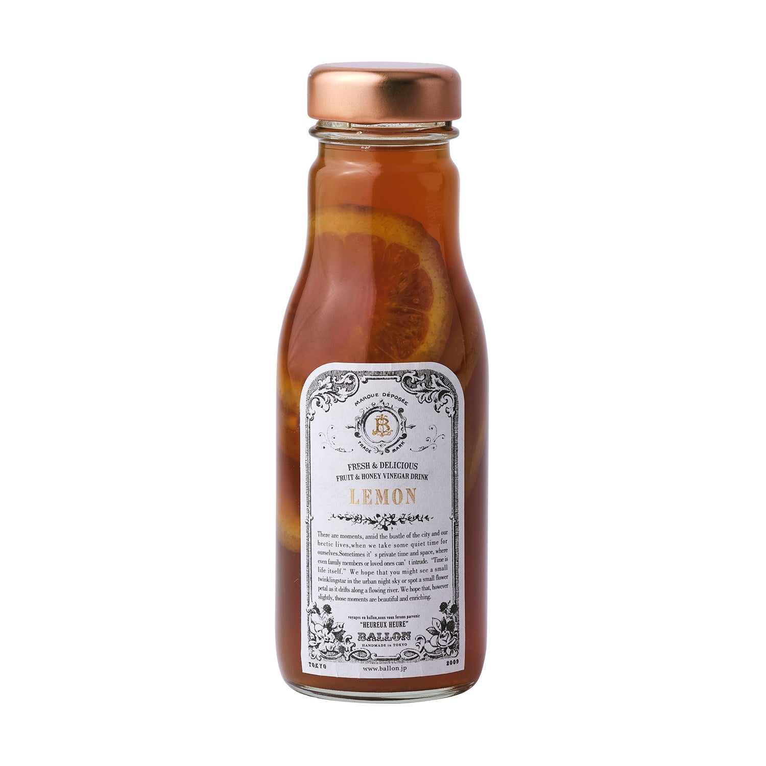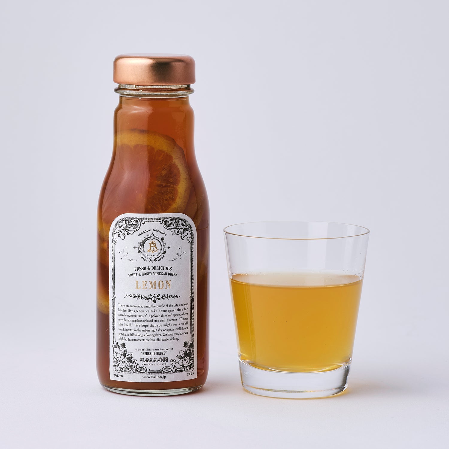 BALLON のフルーツビネガードリンクは、砂糖、保存料不使用、フルーツとハチミツを漬け込み、自然な甘味とフルーティーな味付け。