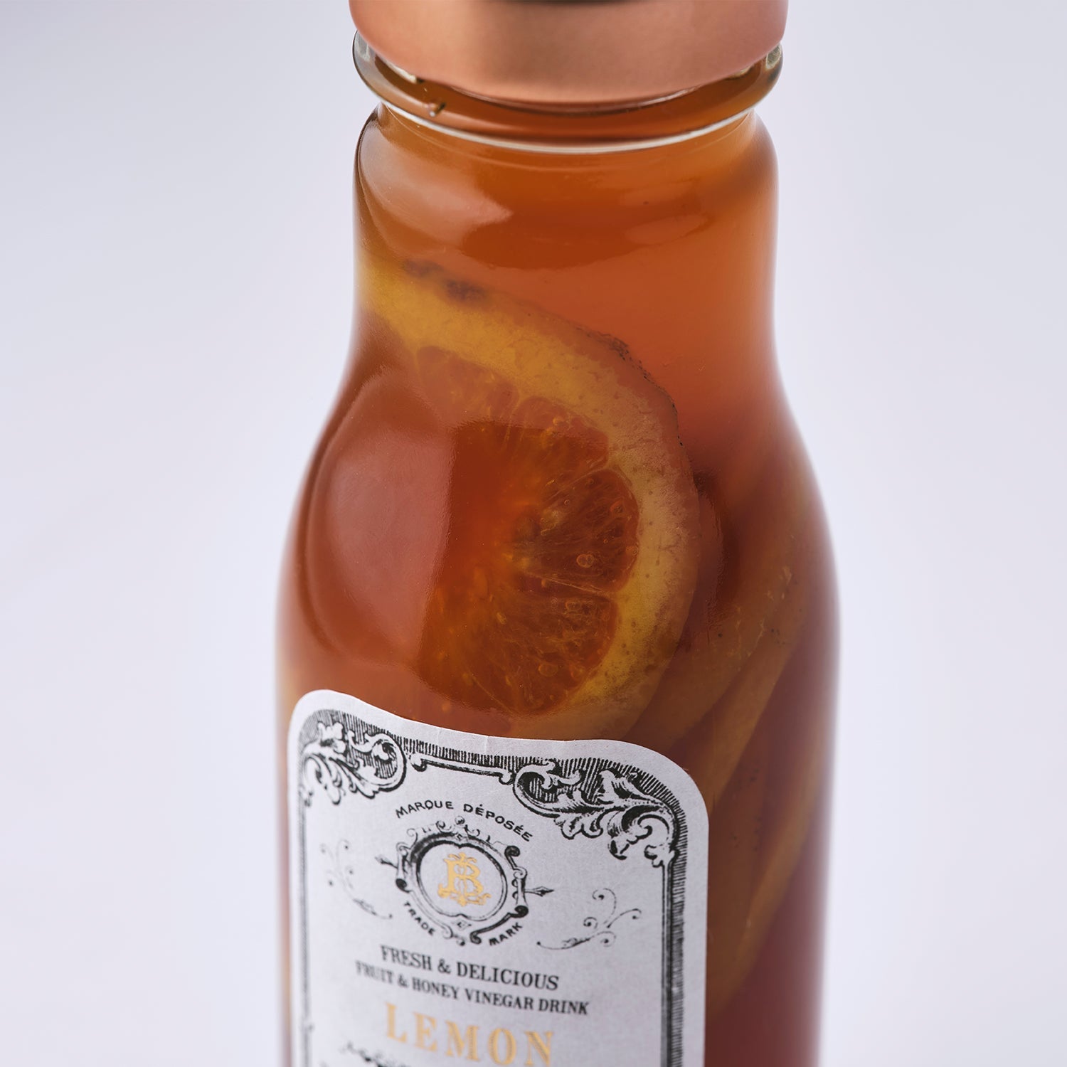 美肌の元、ビタミンCがたっぷり、抗酸化作用の強いクエン酸&カリウムも豊富なレモンの爽やかな風味で疲労回復におすすめな国産レモンとハチミツのビネガードリンク。
