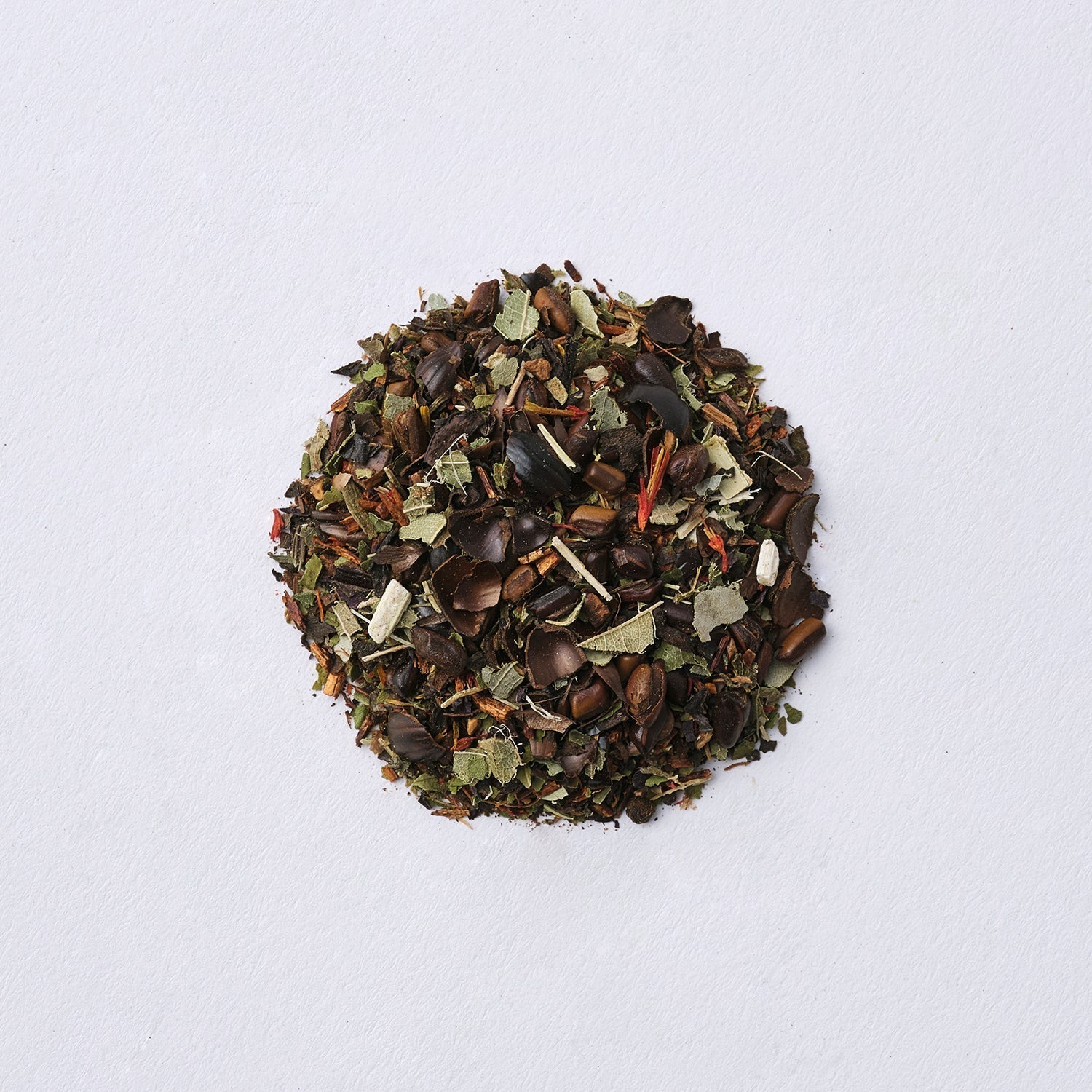 その他、血行促進作用があり体を温めたりホルモンのバランスを整える作用がある紅花、血圧を緩やかに降下させる杜仲茶、食物繊維が豊富なバナバ、タンパク質やアミノ酸が豊富なハトムギ、カテキンなどの30種類以上のフラボノイドが含まれるイチョウ、免疫機能や代謝を促しコレステロールを減少させる月見草、ビタミンCを多く含みグァバなど、様々な効果が期待できる野草がブレンド。