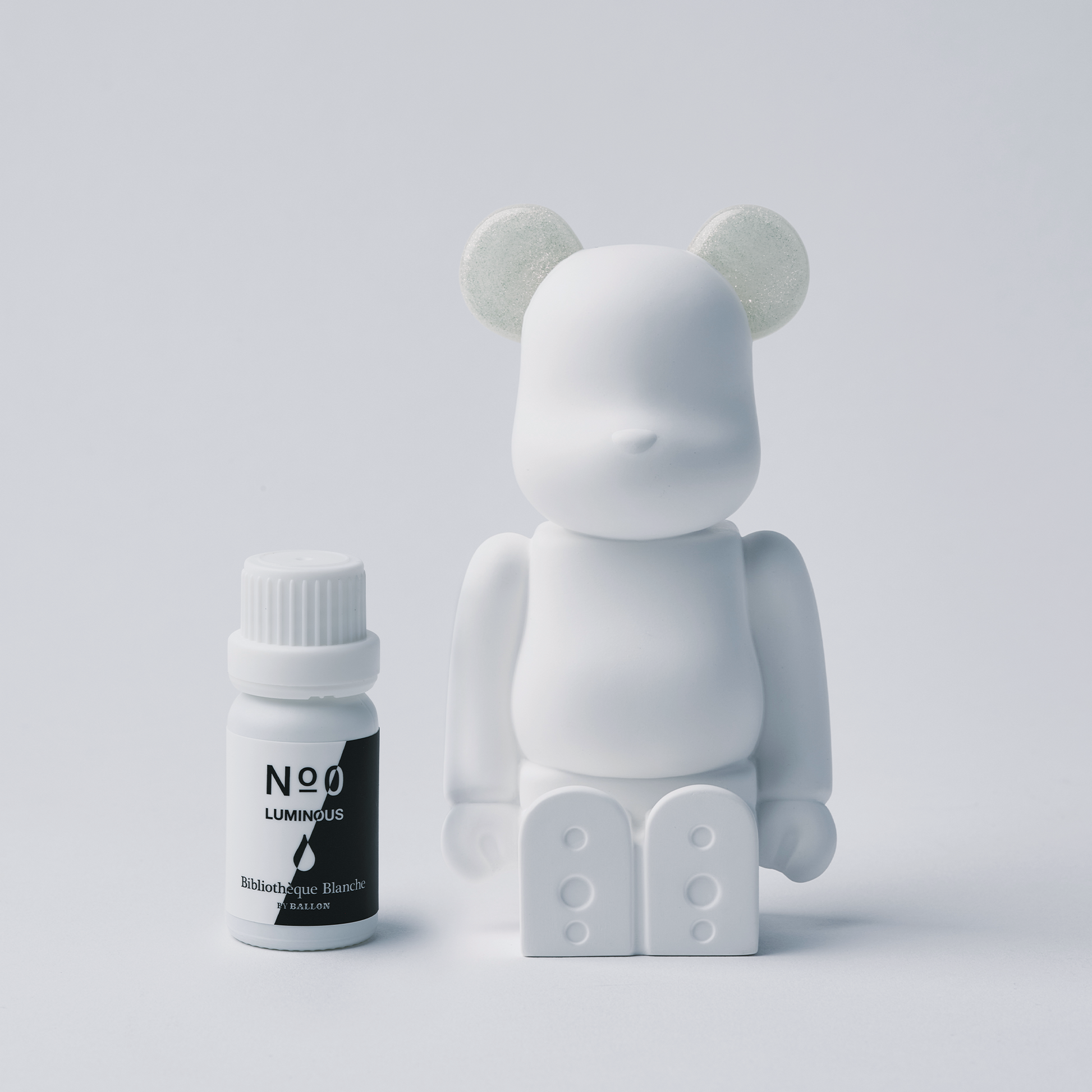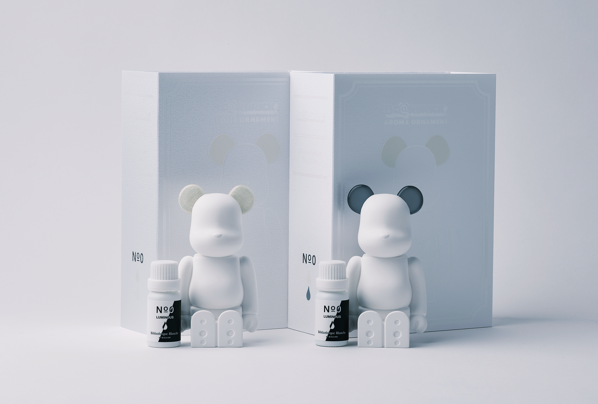 メディコム・トイ社のクマ型ブロックタイプフィギュア「BE@RBRICK」、アロマデザインブランド「BALLON」による「Bibliothèque Blanche」とのコラボレーションアイテム。