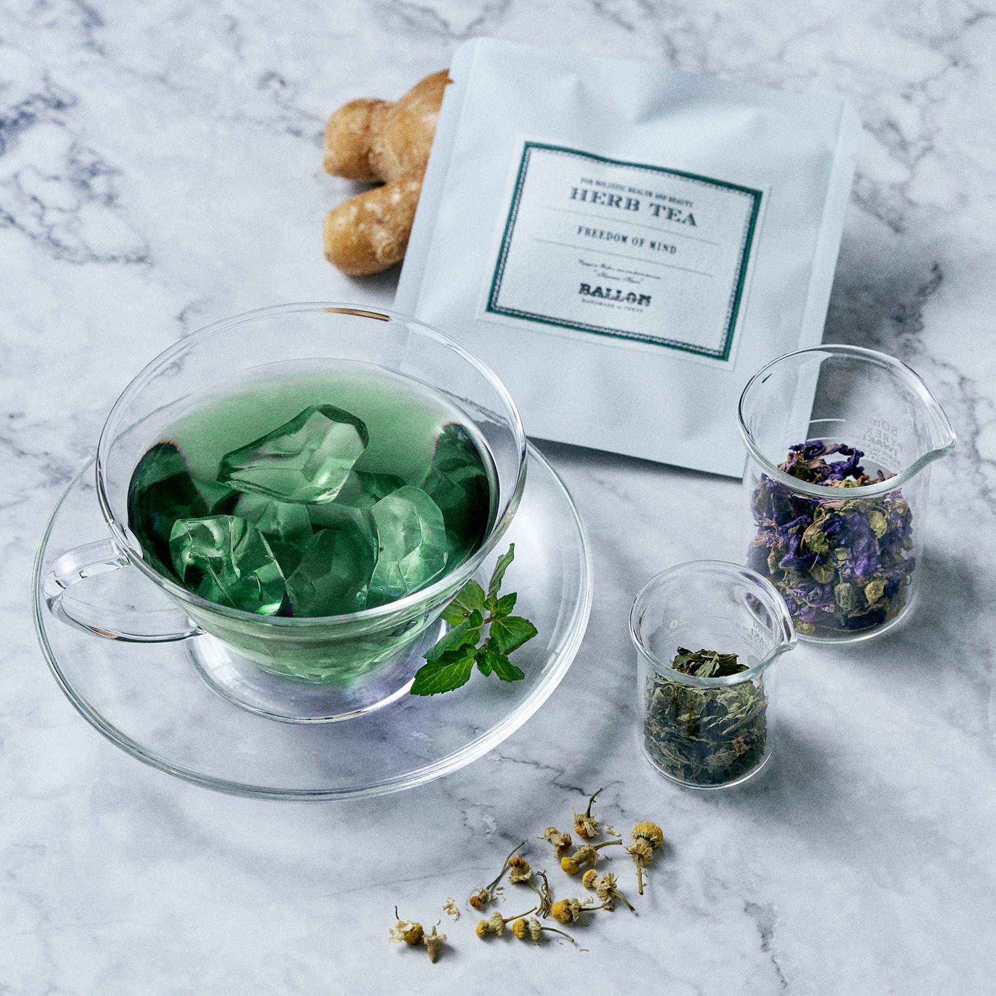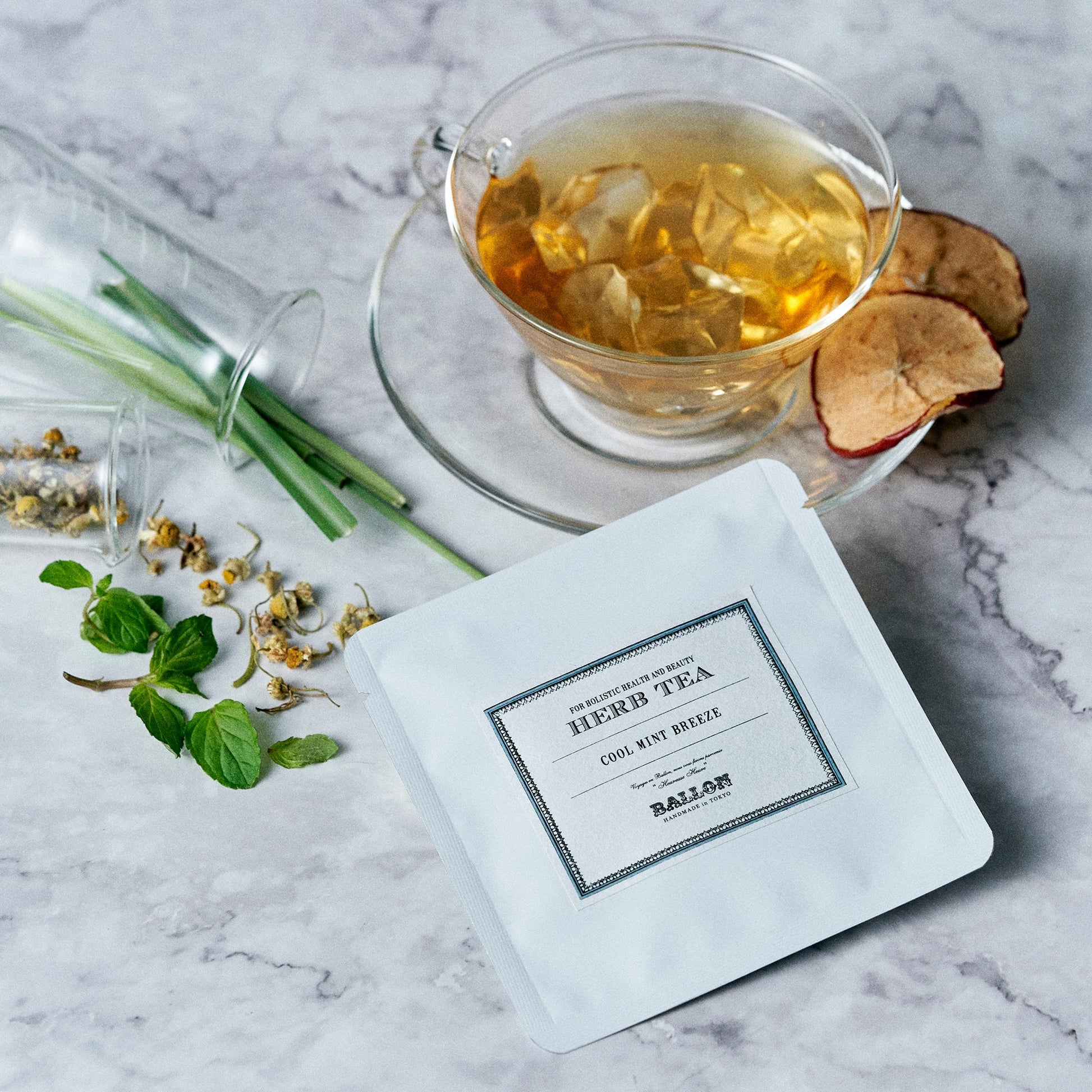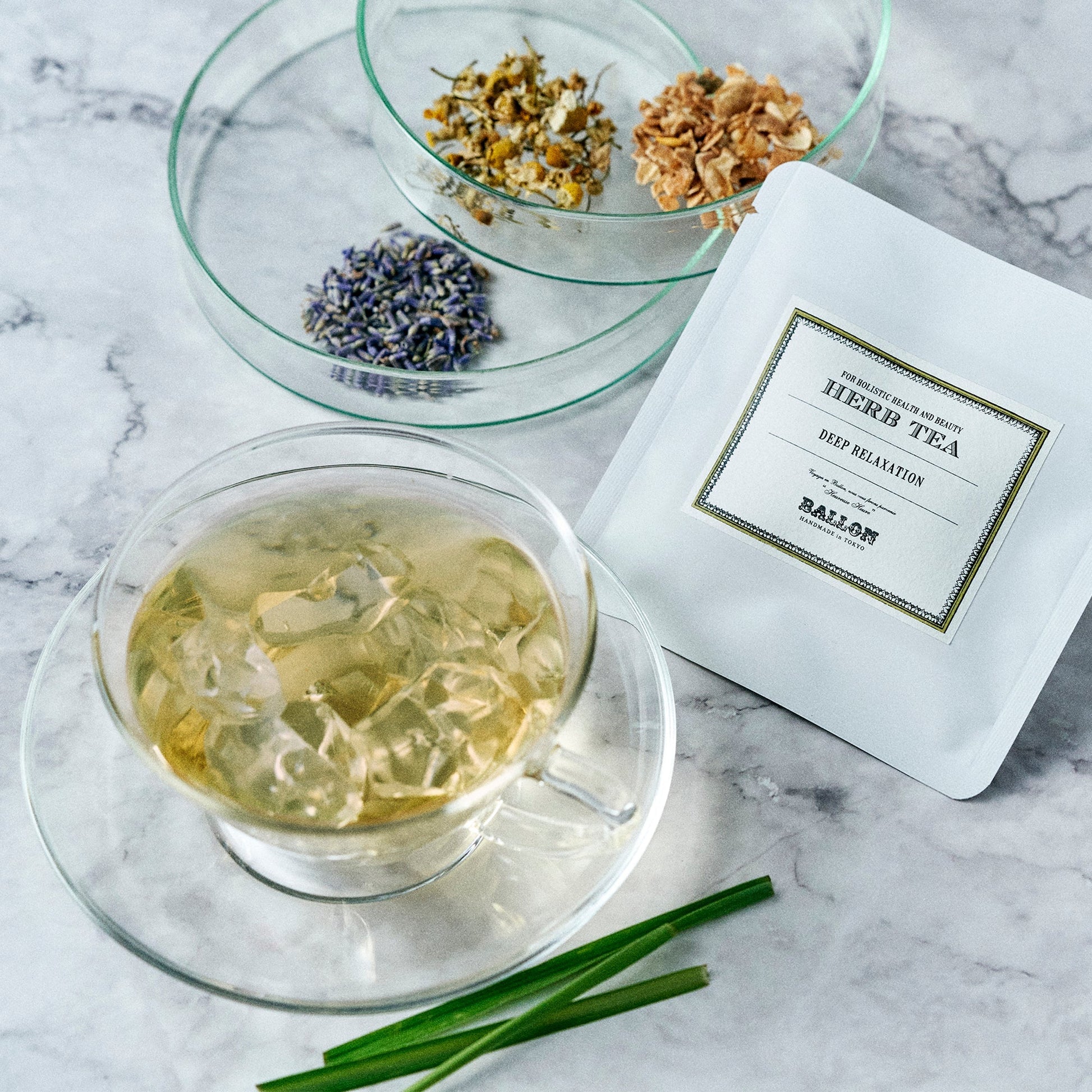 BALLONのハーブティー6種全種類をお試しいただけるアソートセットとアロマバスソルトのローズがセットになったギフトセット。