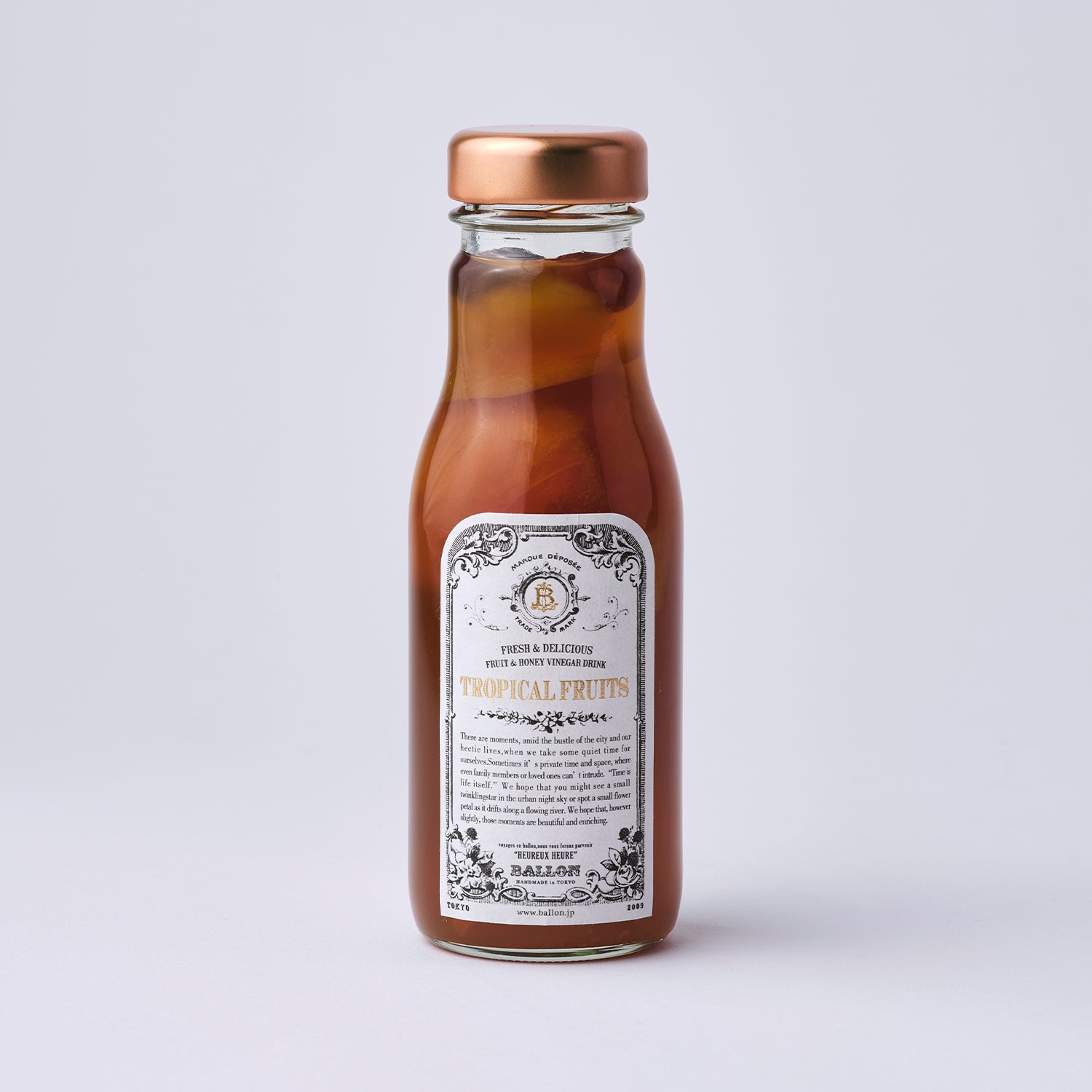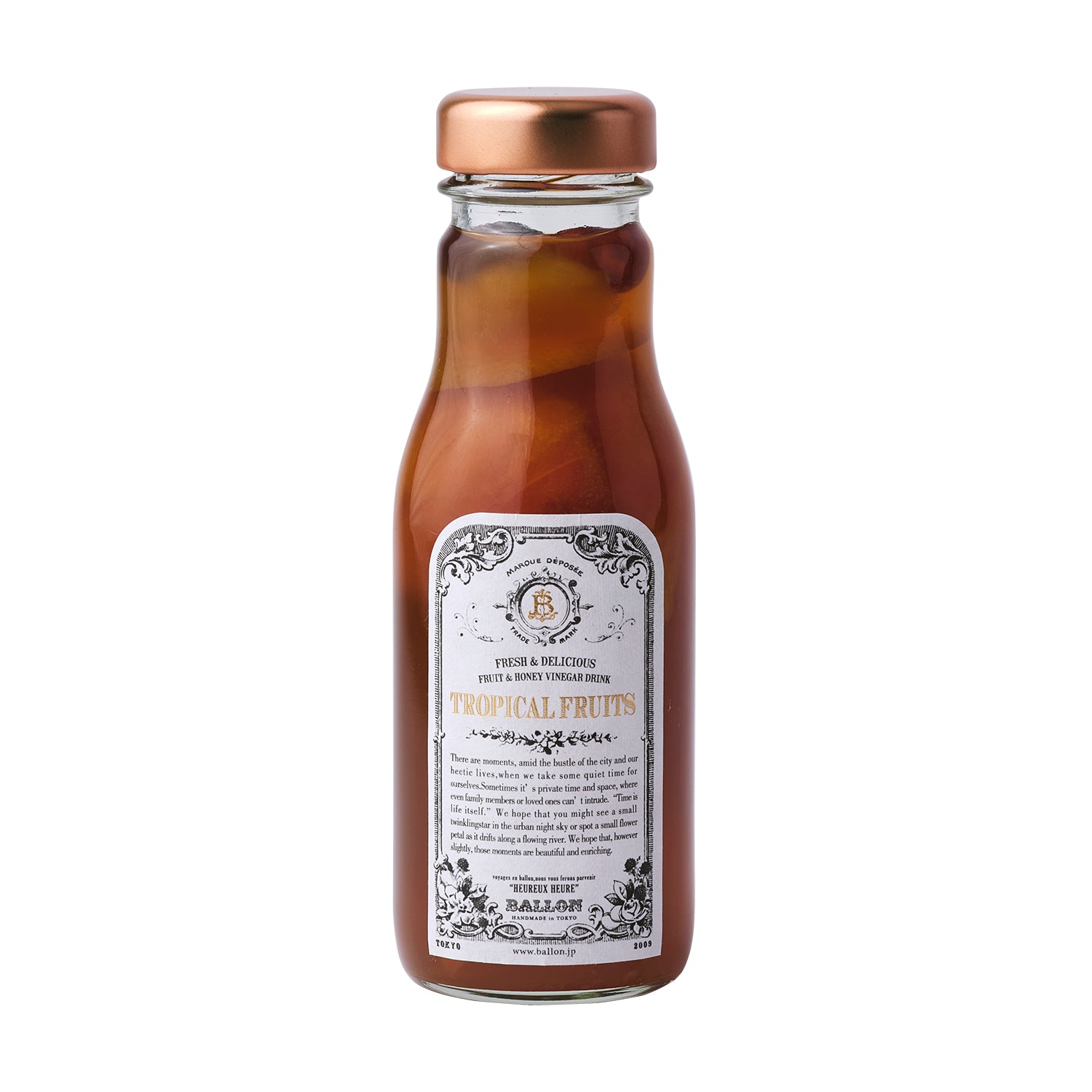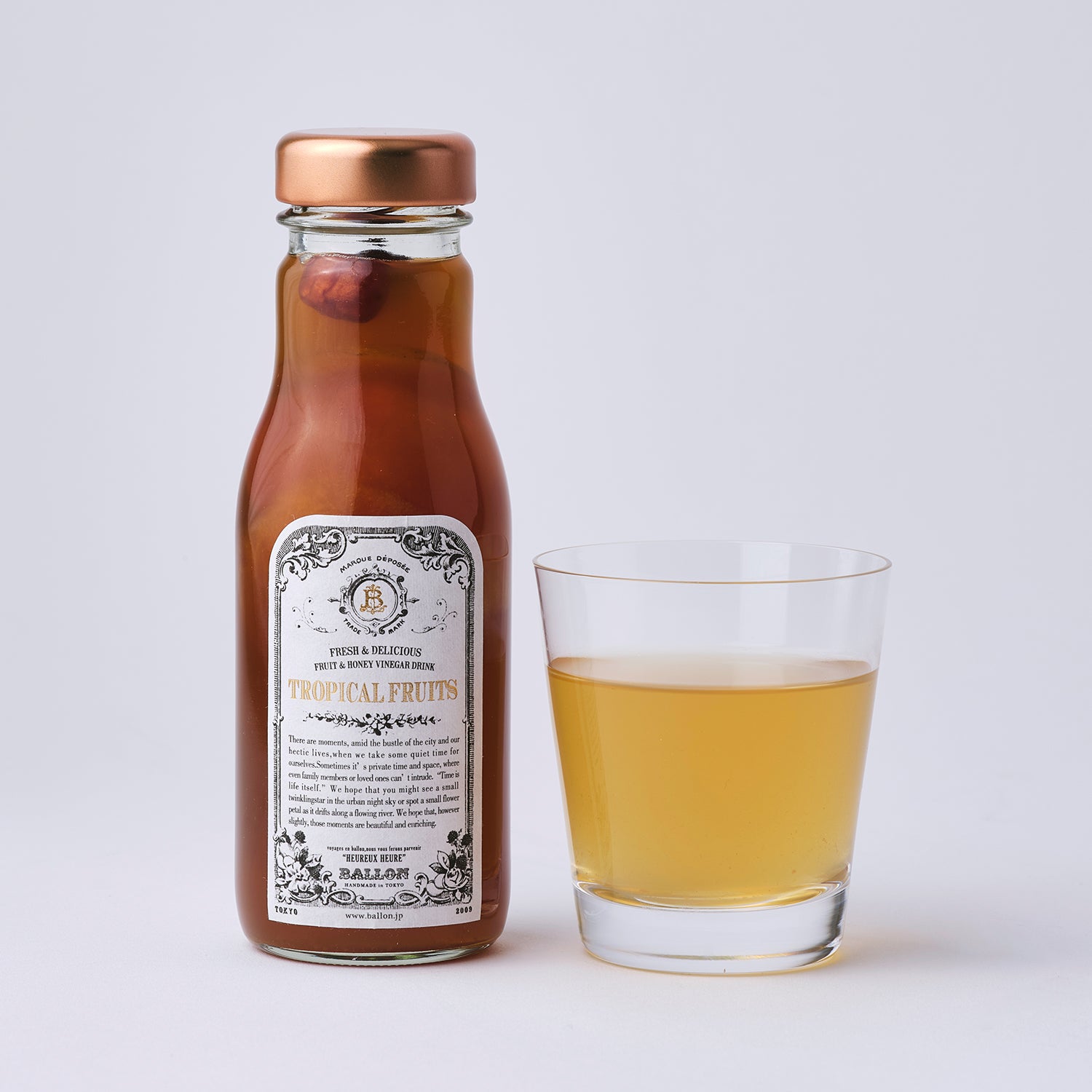 BALLON のフルーツビネガードリンクは、砂糖、保存料不使用、フルーツとハチミツを漬け込み、自然な甘味とフルーティーな味付け。