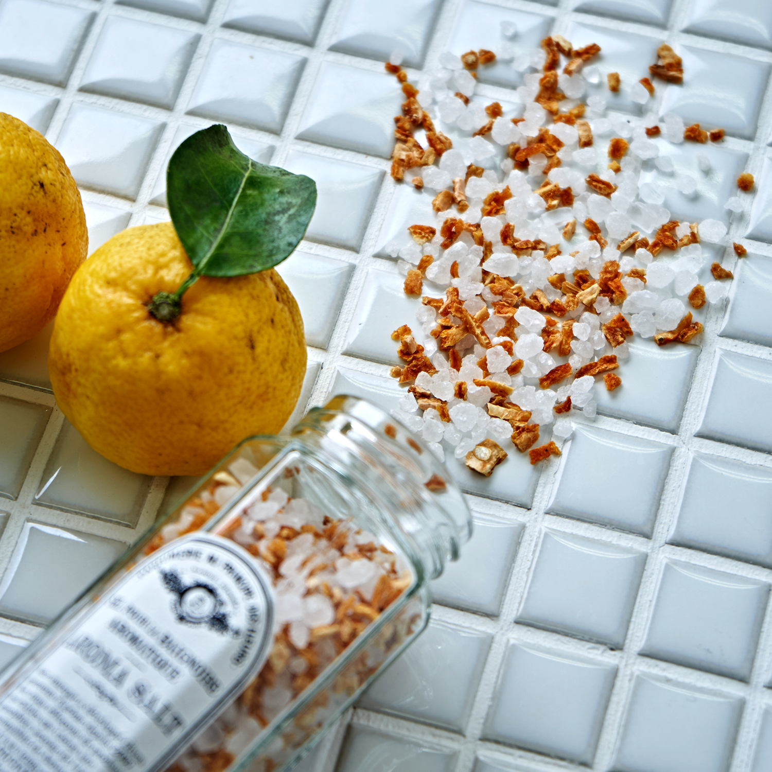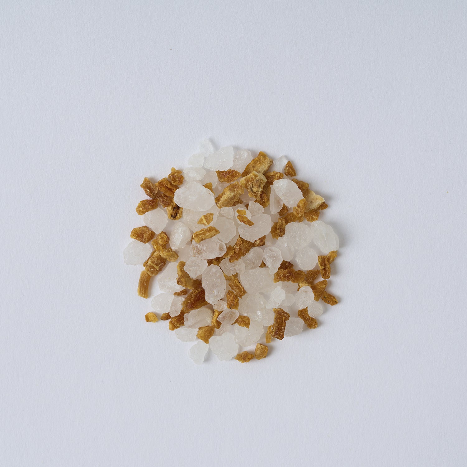 岩塩に対してかなり大量の柚子果皮を配合しました。