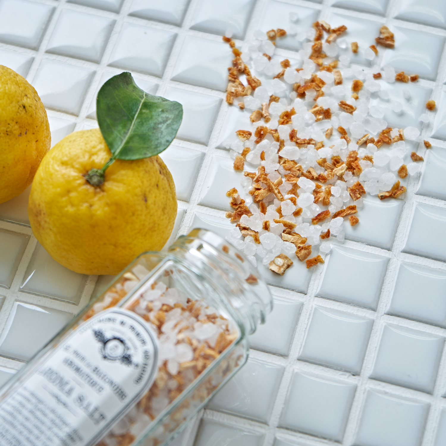岩塩に対してかなり大量の柚子果皮を配合しました。