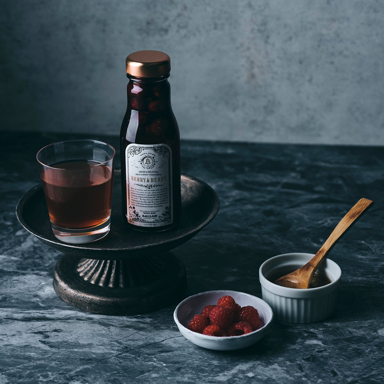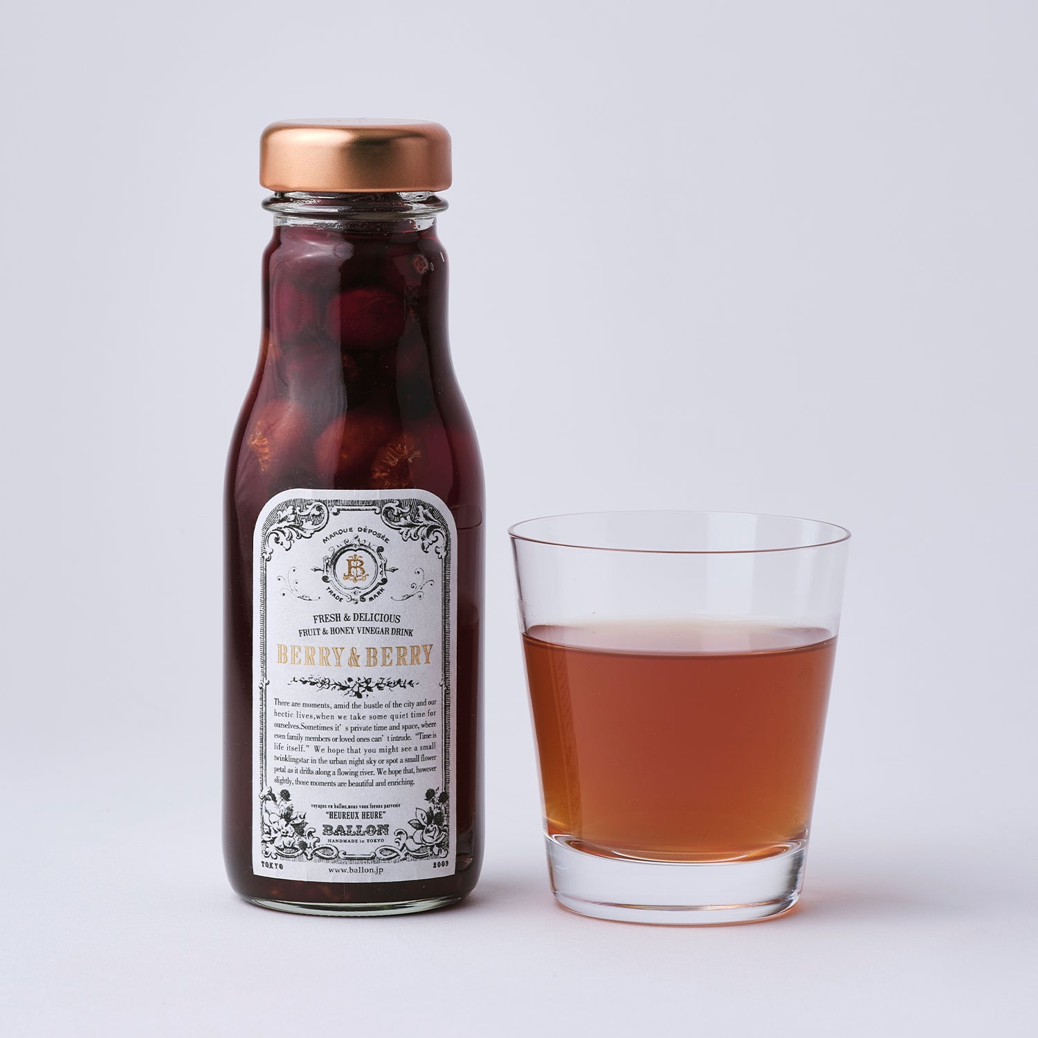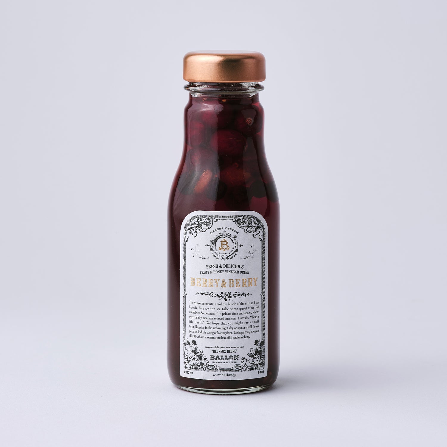 BALLON のフルーツビネガードリンクは、砂糖、保存料不使用、フルーツとハチミツを漬け込み、自然な甘味とフルーティーな味付け。