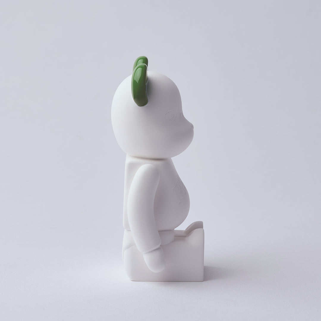 石膏のBE@RBRICKは、“Not in Paris”のコンセプトカラーであるグリーンとホワイトの耳の2種、顔とボディにわたり“Not in Paris”のオフィシャルロゴの1つであるアーチロゴをほどこしました。