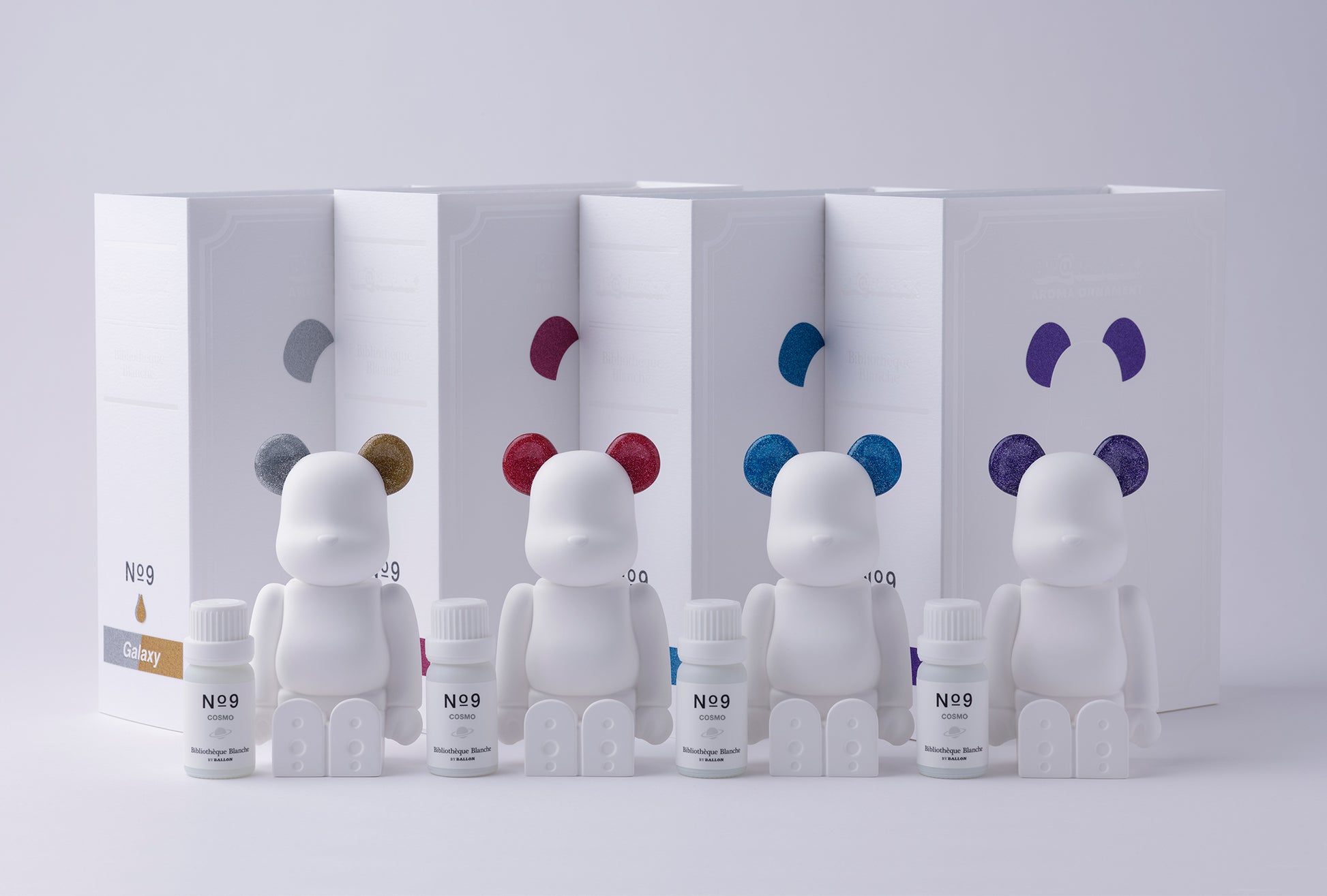 「Bibliothèque Blanche BY BALLON」とメディコム・トイのクマ型ブロックタイプフィギュア「BE@RBRICK」による “BE@RBRICK AROMA ORNAMENT” シリーズです。
