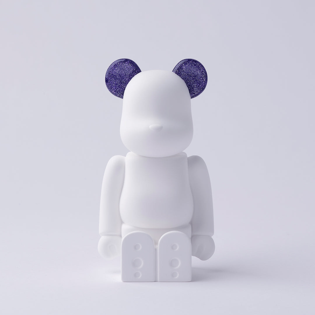 BE@RBRICK AROMA ORNAMENT No.9 Galaxy is a series featuring glittered ears, reminiscent of a galaxy. The design of the body utilizes a mystical pure white color to emphasize the aesthetics of the contour just like the No. 0 series. The new glitter colors for 2021 are the following: SILVER GOLD (each ear colored differently), PINK, AQUA and PURPLE. All four colors share the same scent, featuring an aroma based on what outer space may smell like.