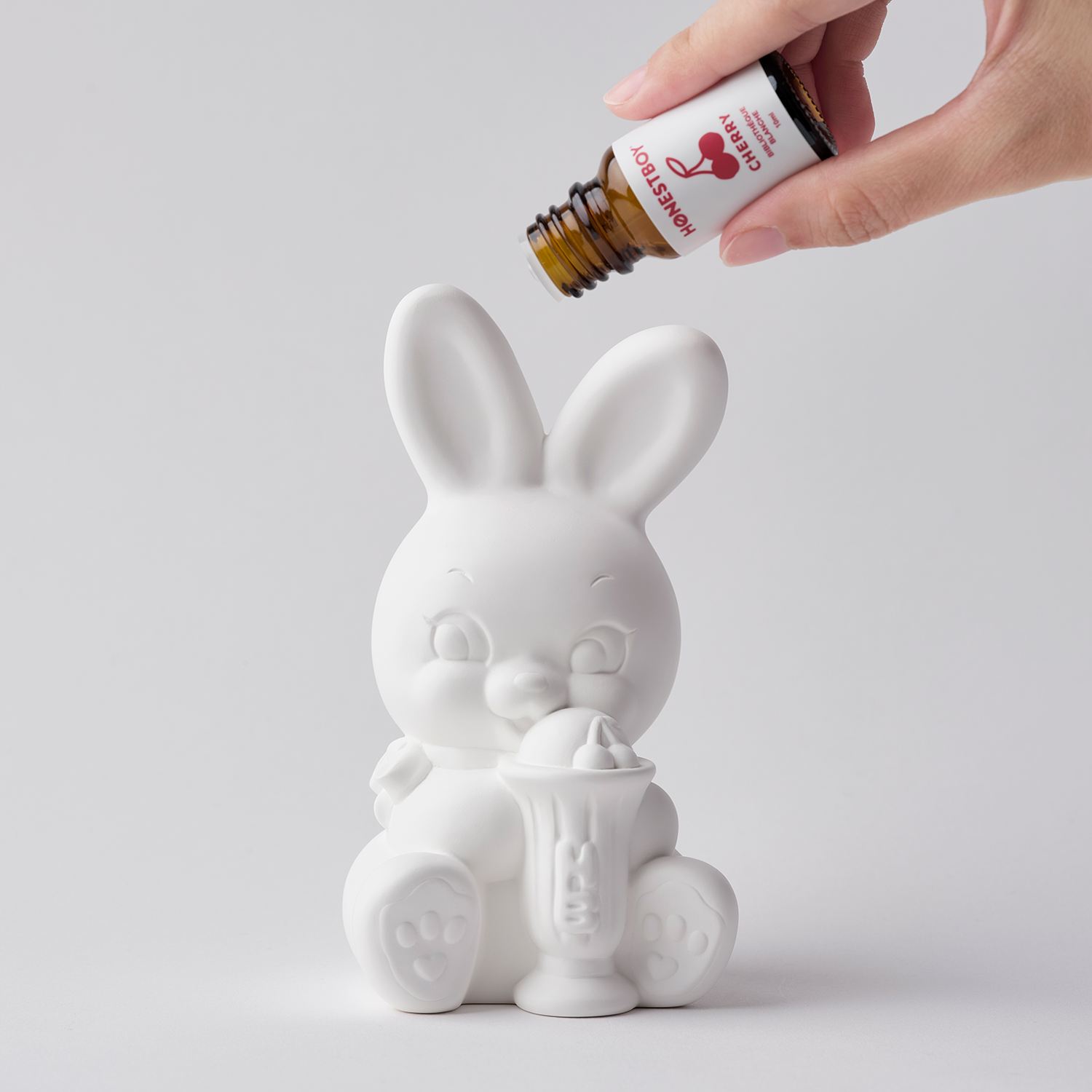 The fragrance is inspired by the cherry on the ice cream that Roger, the iconic rabbit of HONESTBOY ®, is holding. Bursting with juicy fruits and fresh flowers, it is a refreshing urban fragrance suitable for any gender.